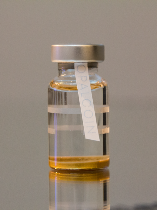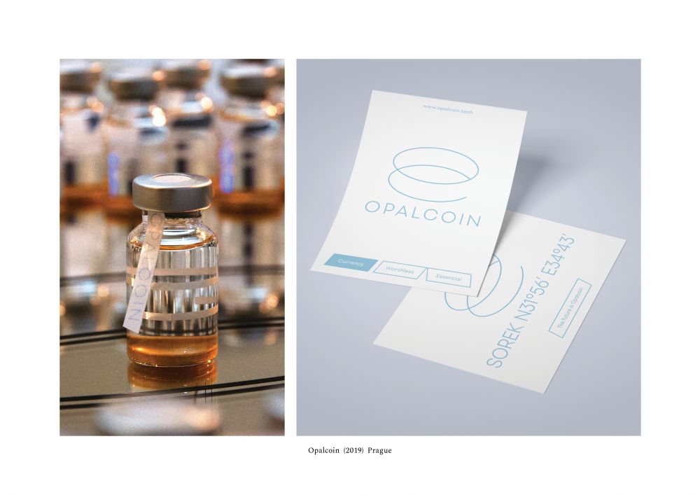 Opalcoin je fiktivní produkt, designová lahvička s líbivým logem a merkantilem. Uvnitř lahvičky se však neskrývá nic než průhledná mystifikace. Prezentace produktu slouží jako komentář situace současného kapitalismu, ve kterém se střídají manické a depresivní fáze jako na běžícím pásu. Manickou fáze zastupují nové technologické objevy - dokonale likvidní FIAT deriváty, kryptoměny definující se jako zachránci systému nebo investiční příležitosti do vlastní záchrany v realitě budoucí ekologické katastrofy. Depresivní fázi reprezentuje realita naší současnosti - prekarizace, vykořisťování, kapitalizace veřejných statků atd.